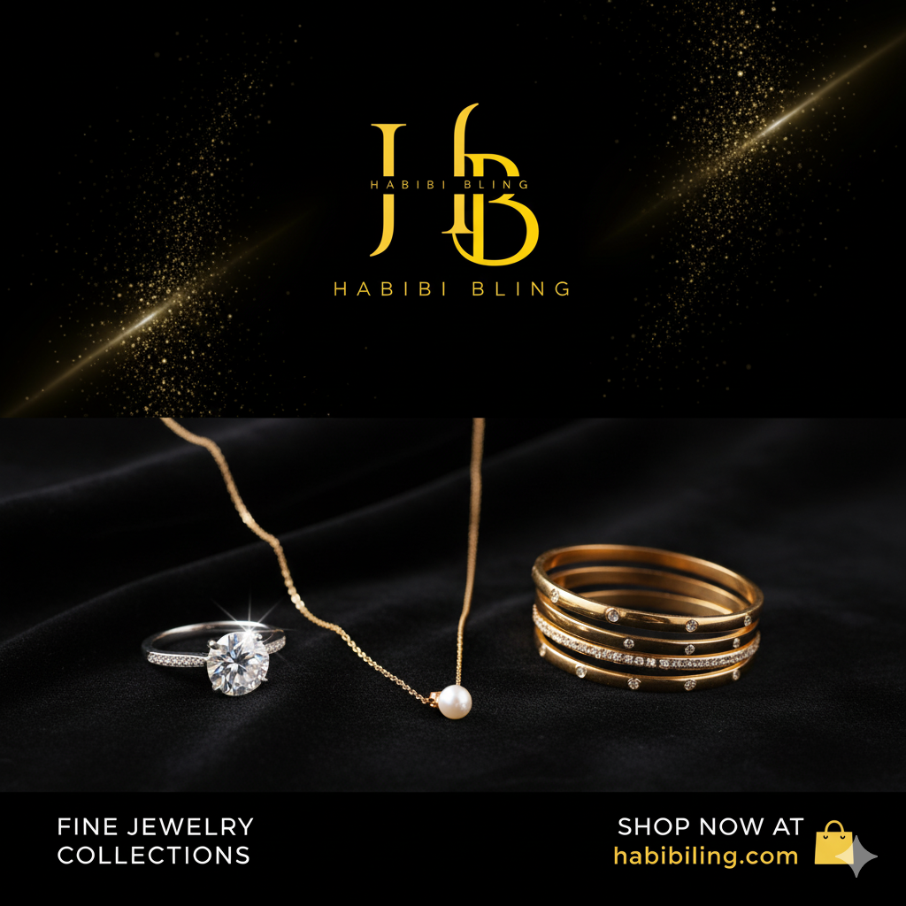 At Habibi Bling, we bring you luxury that speaks from the heart. Each piece is crafted with care using premium materials, blending modern elegance with Middle Eastern charm. We believe in making every moment shine — whether it’s your everyday look or a special occasion. With timeless designs, lasting quality, and affordable prices, Habibi Bling lets you sparkle with confidence and style.